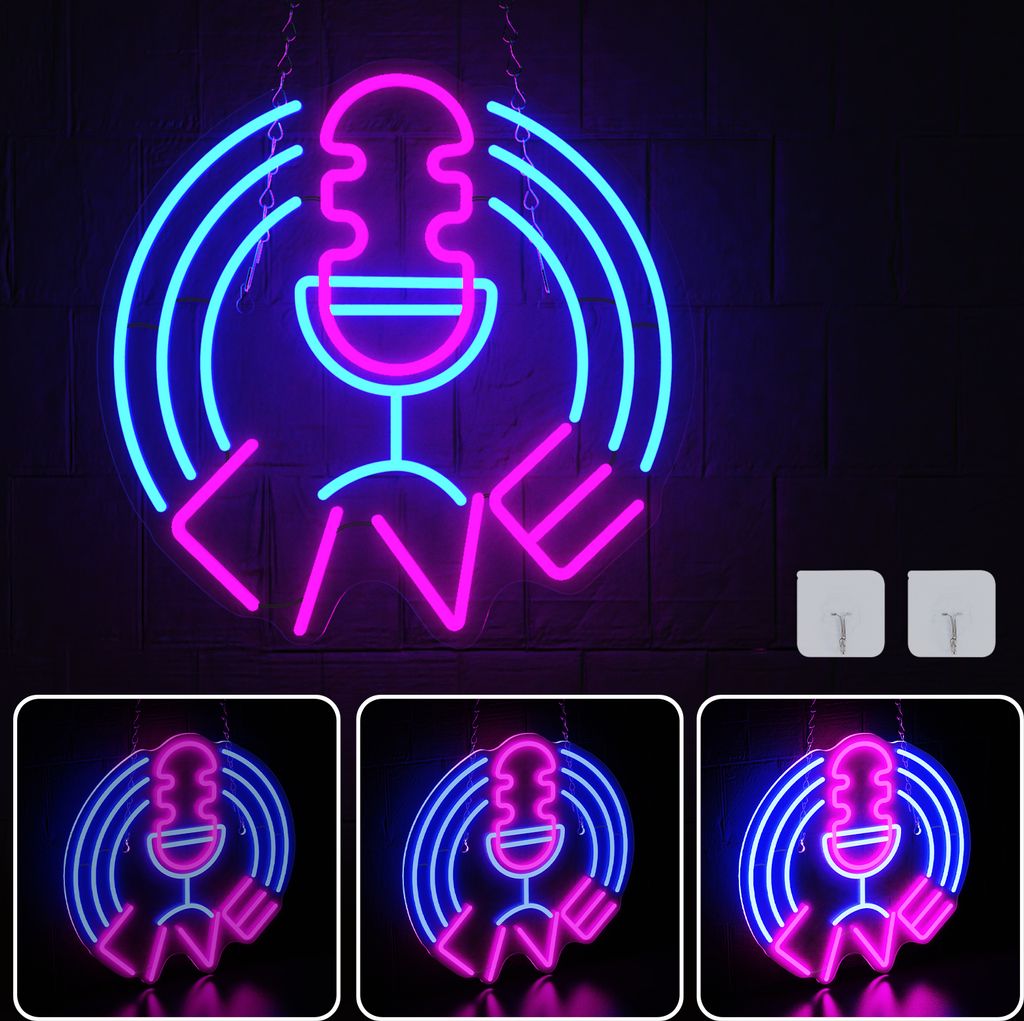 XMTECH Neon-Podcast-Leuchte 'LIVE' in Pink und Blau, optimal für Podcast-Studios und zeitgemäße Einrichtungen, inklusive USB-Kabel, Modell C
