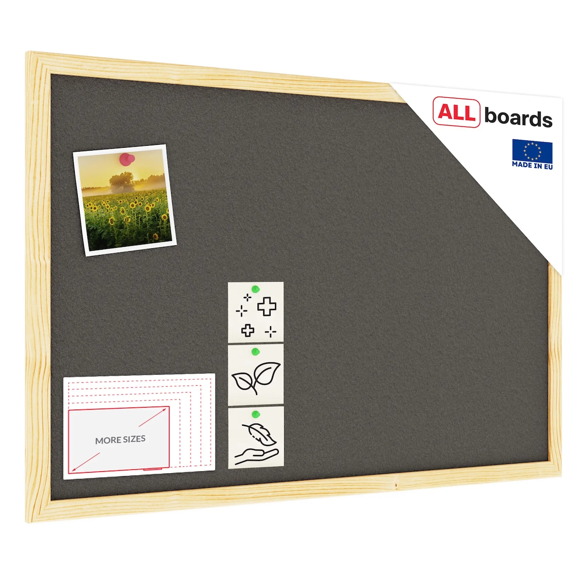Allboards Hellgrau Pinnwand mit Holz Rahmen 90x60cm Korktafel Korkwand Pinnwand Kork Hellgrau Oberfläche