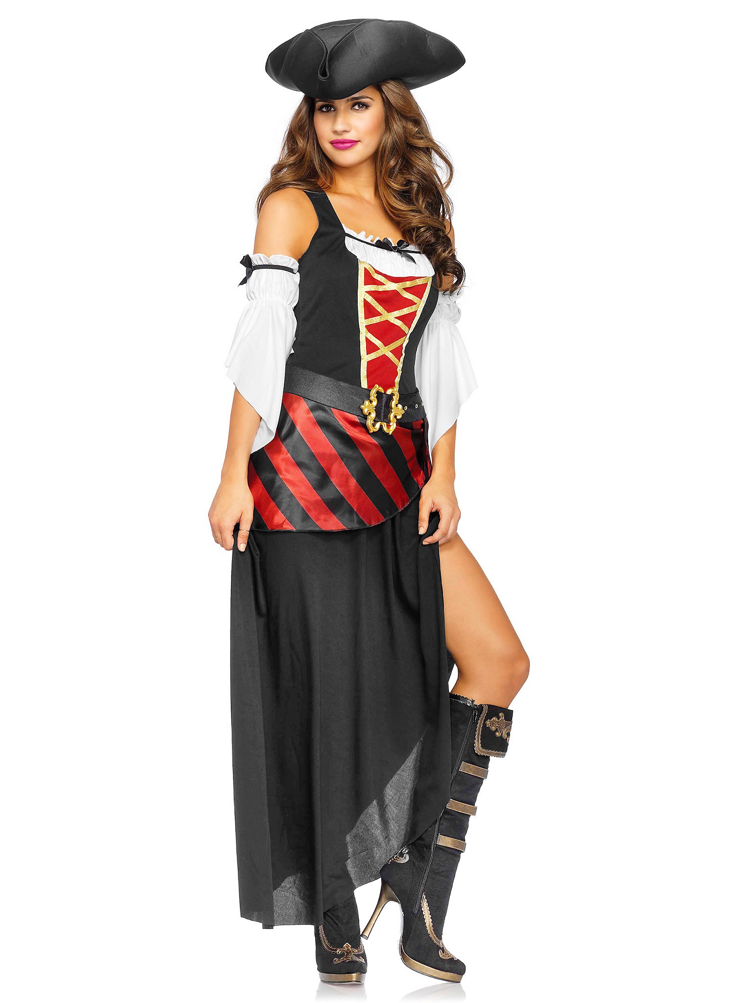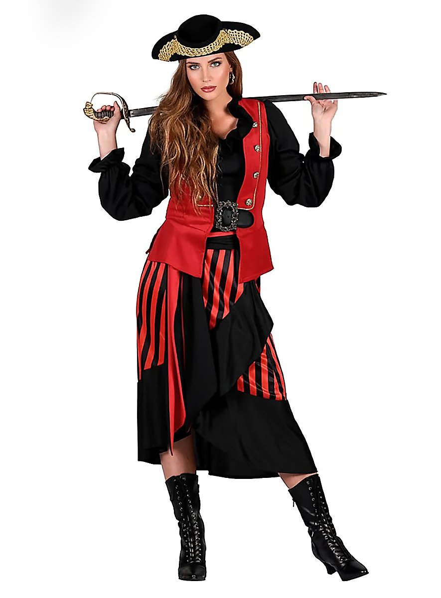 y Piratenkostüm für Damen rot-schwarz-weiss - M