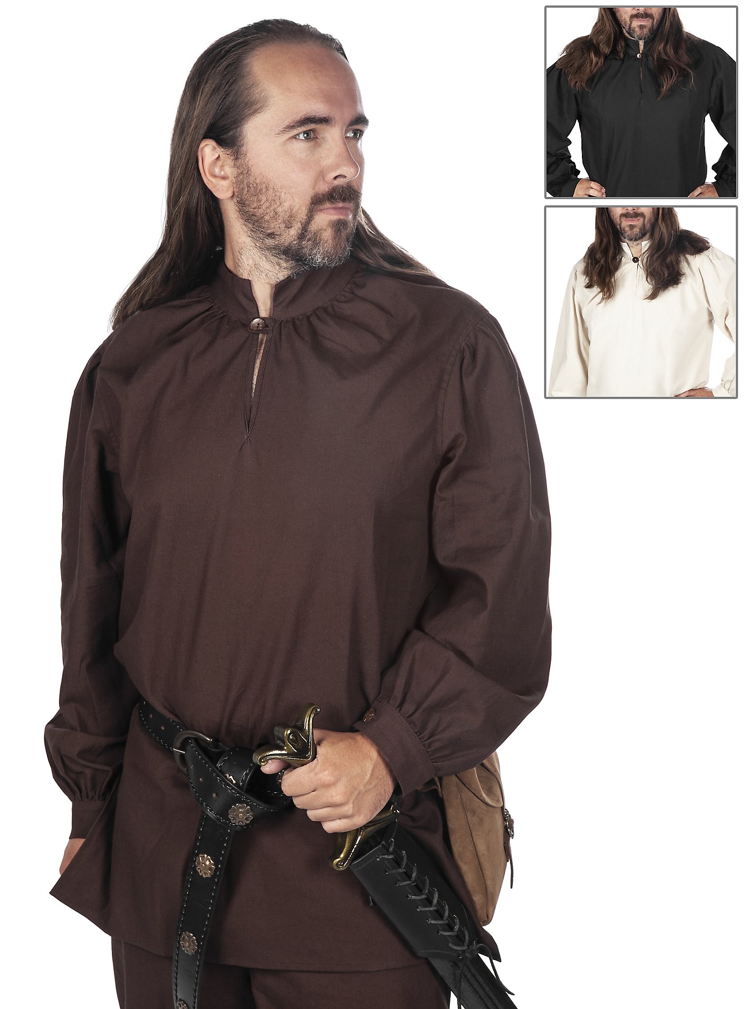 Piratenhemd - Siegfried | Piratenkostüm für Männer | Größe: natur L | Farbe: Beige