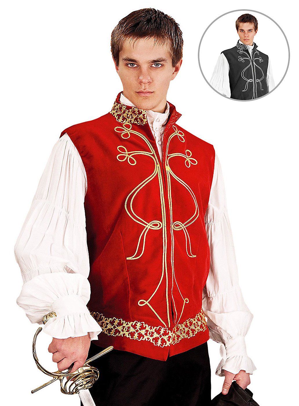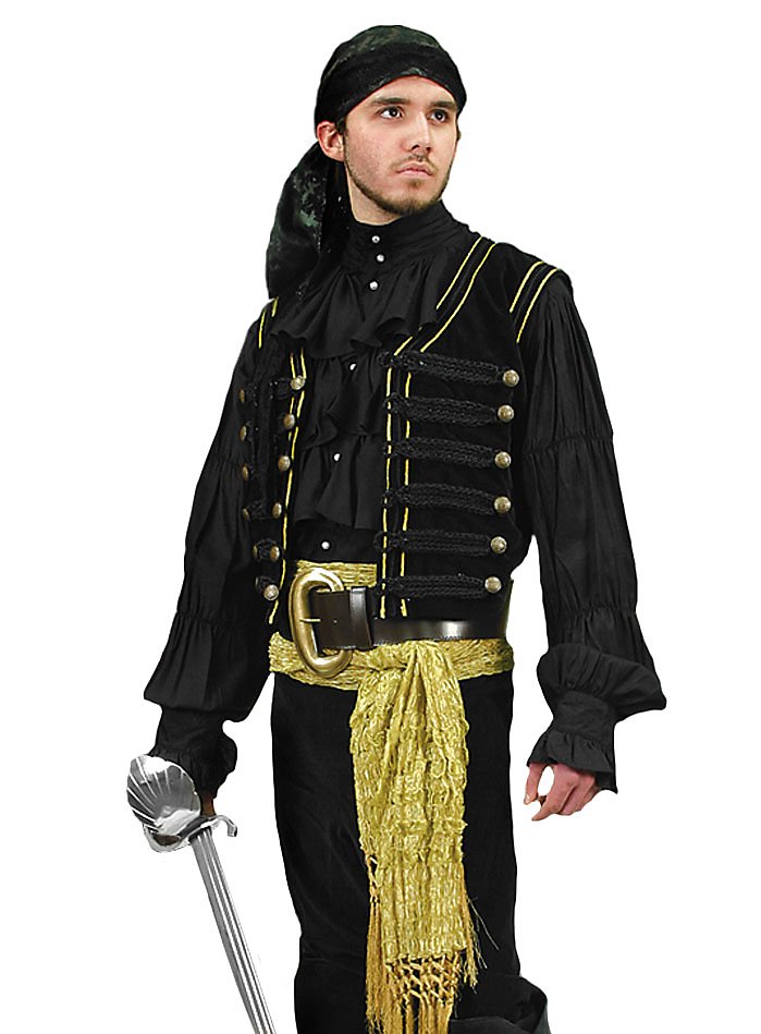 Samtweste - Montague | Piratenkostüm für Männer | Größe: schwarz L | Farbe: Schwarz