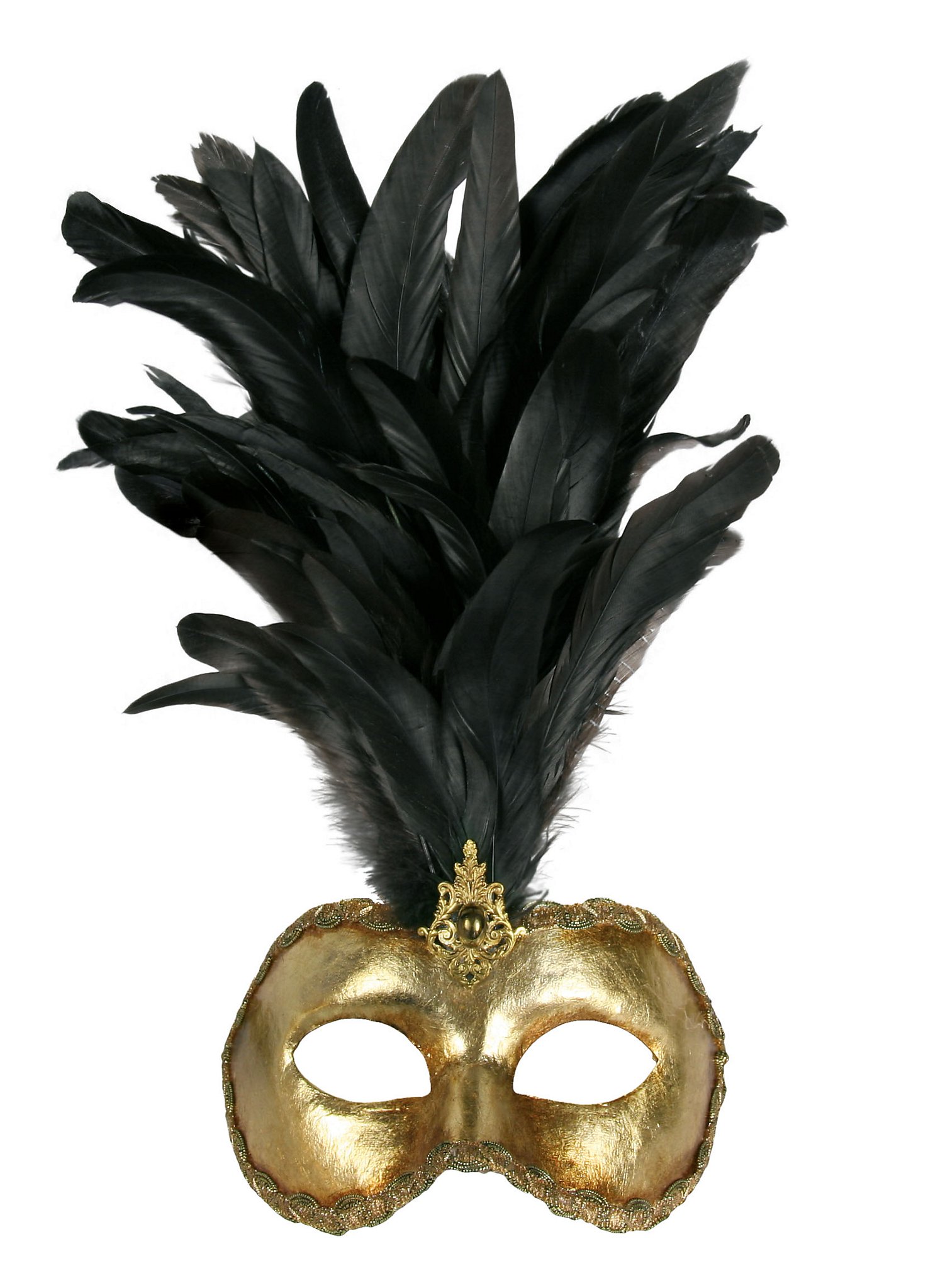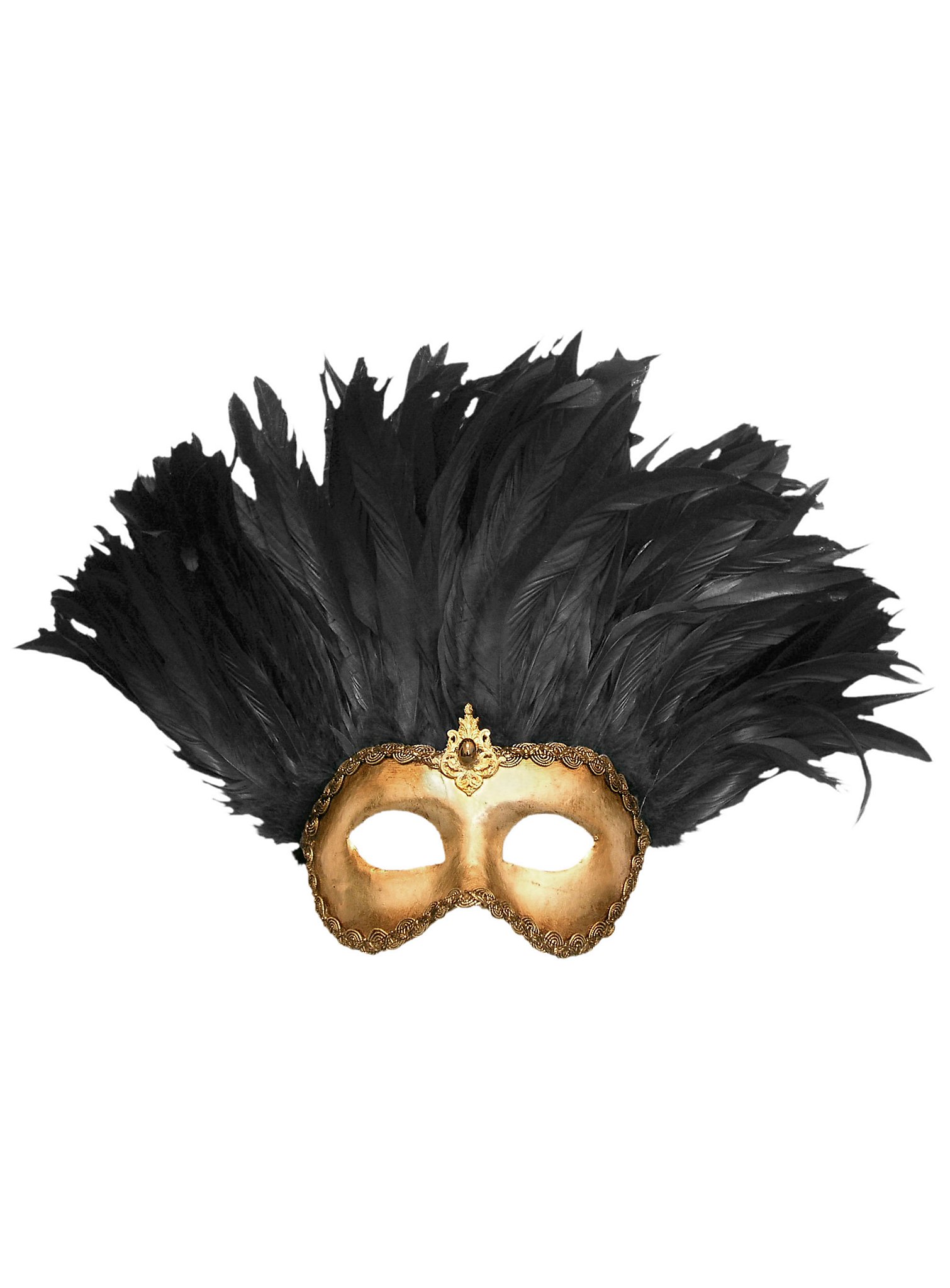 Piuma grande volto macrame oro piume nere - Venezianische Maske