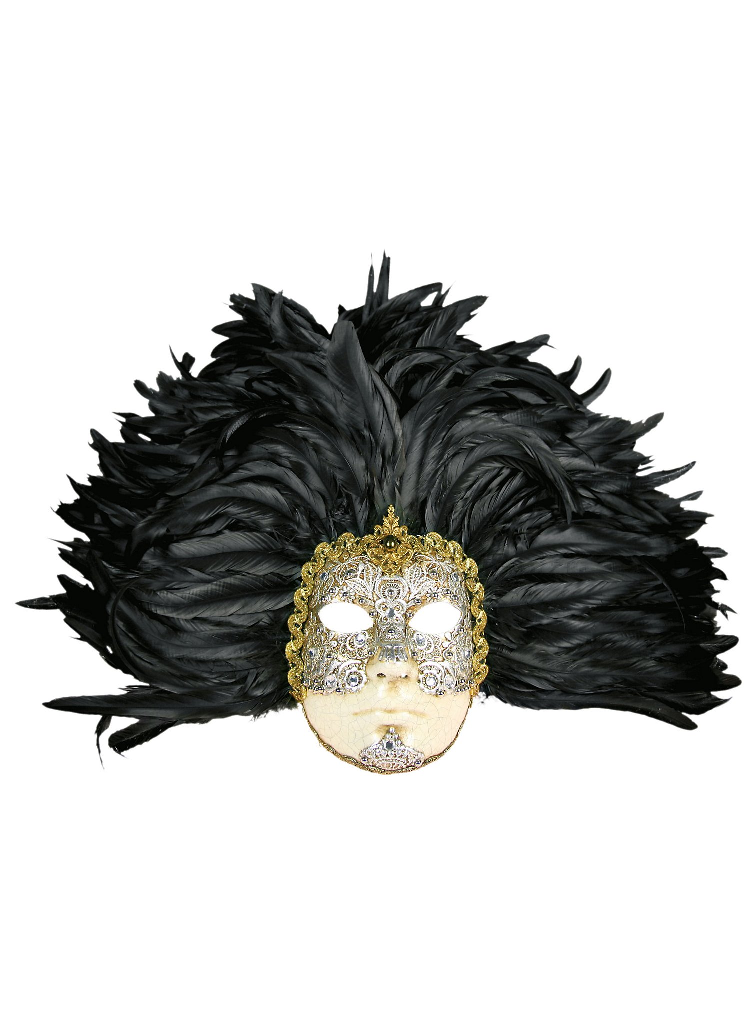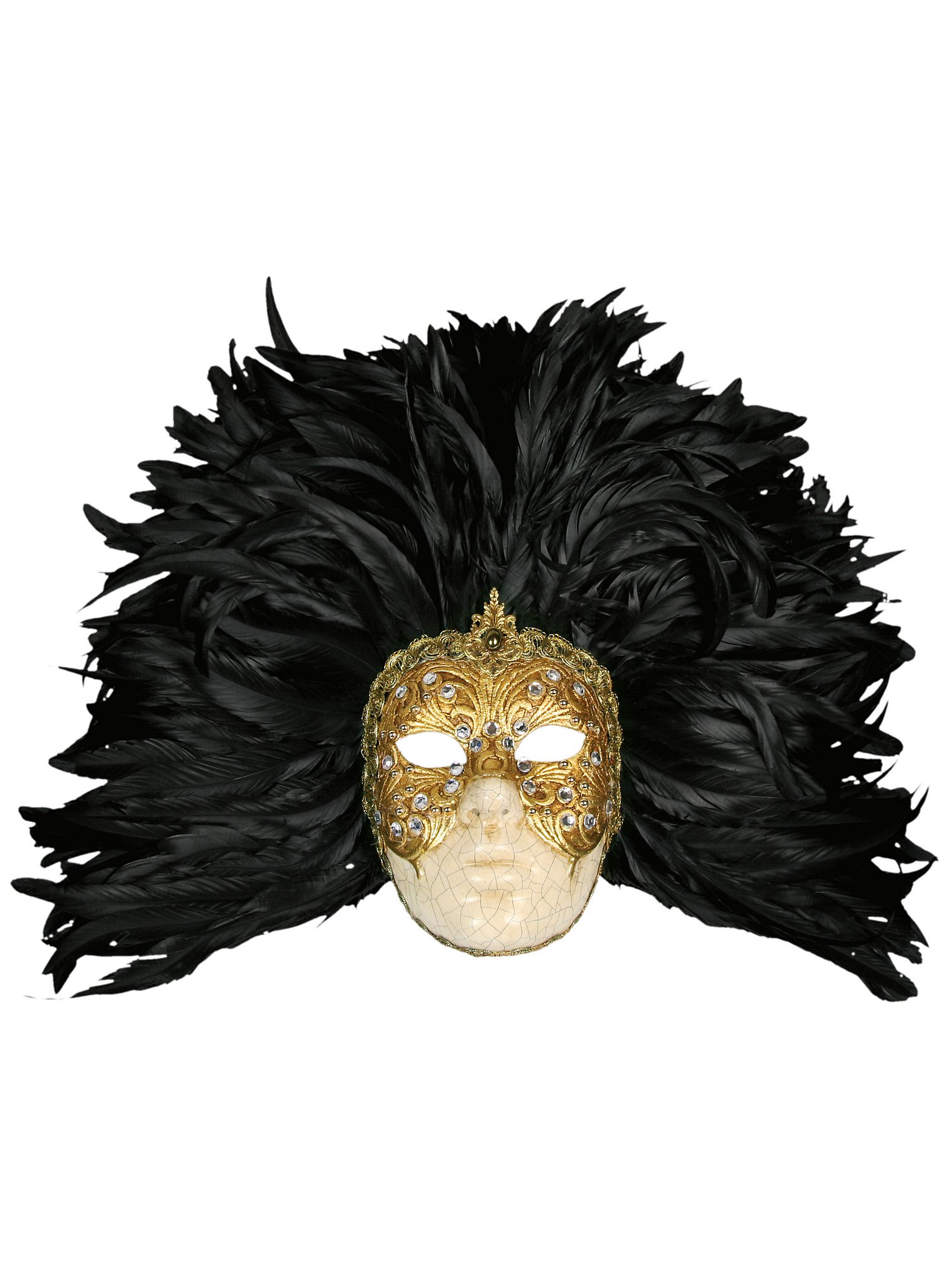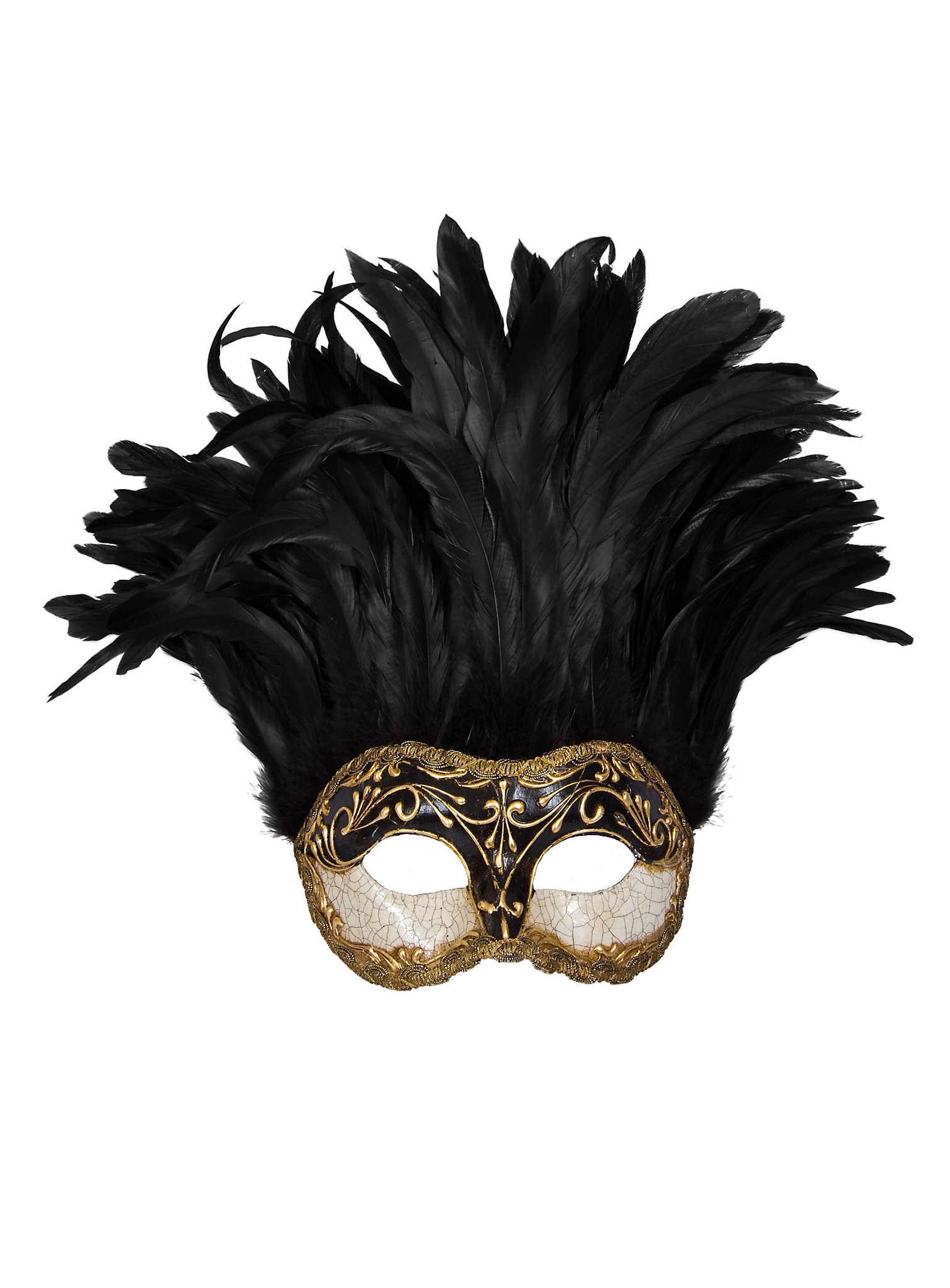 Incas Colombina Stucco Craquele Nera Piume Nera Venetian Mask