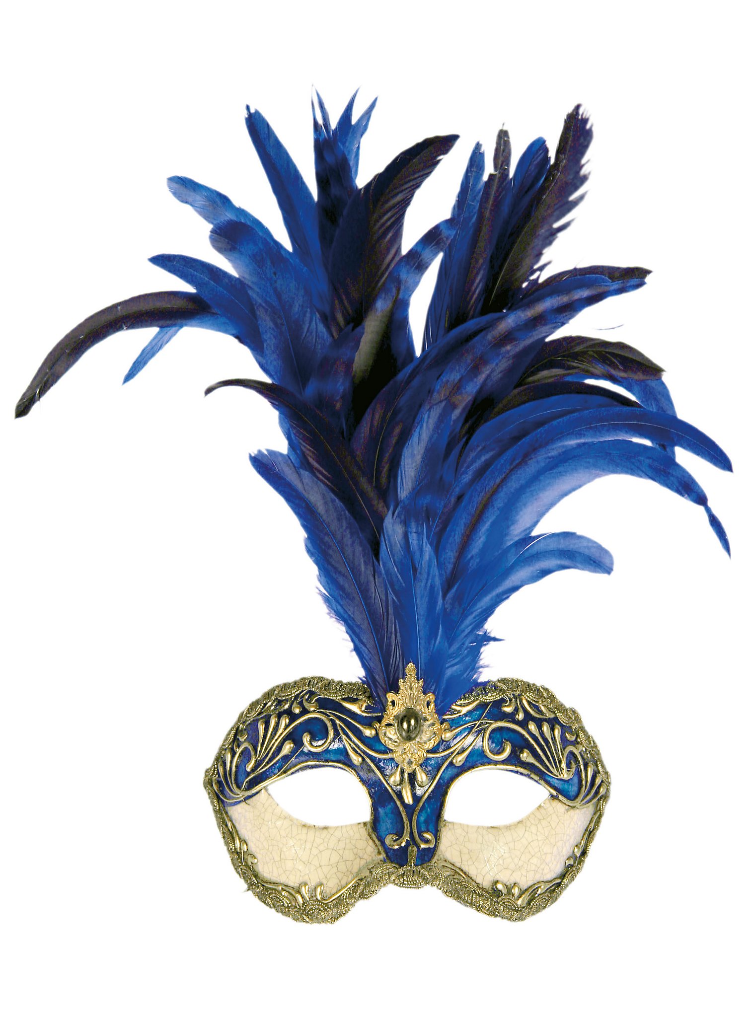 Galetto Colombina stucco craquele blu piume blu - Venetian Mask