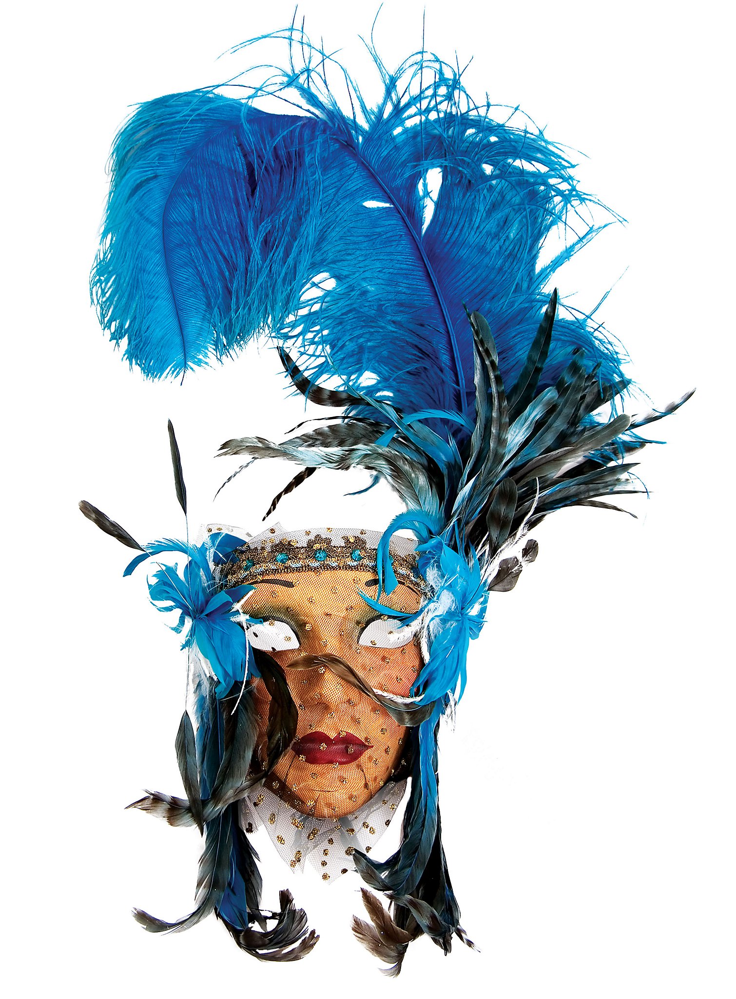Maschera di piume veneziane blu