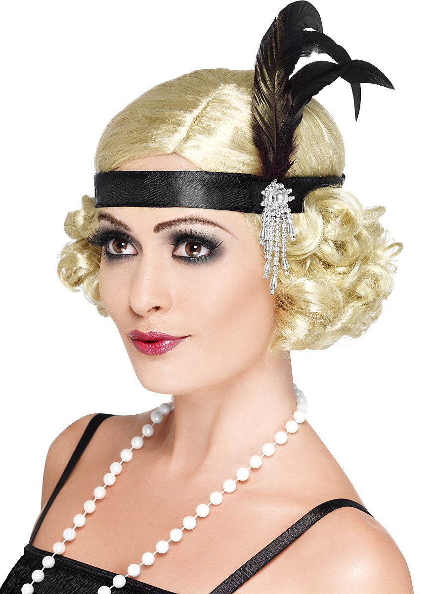 Cerchietto anni '20 nero con piume