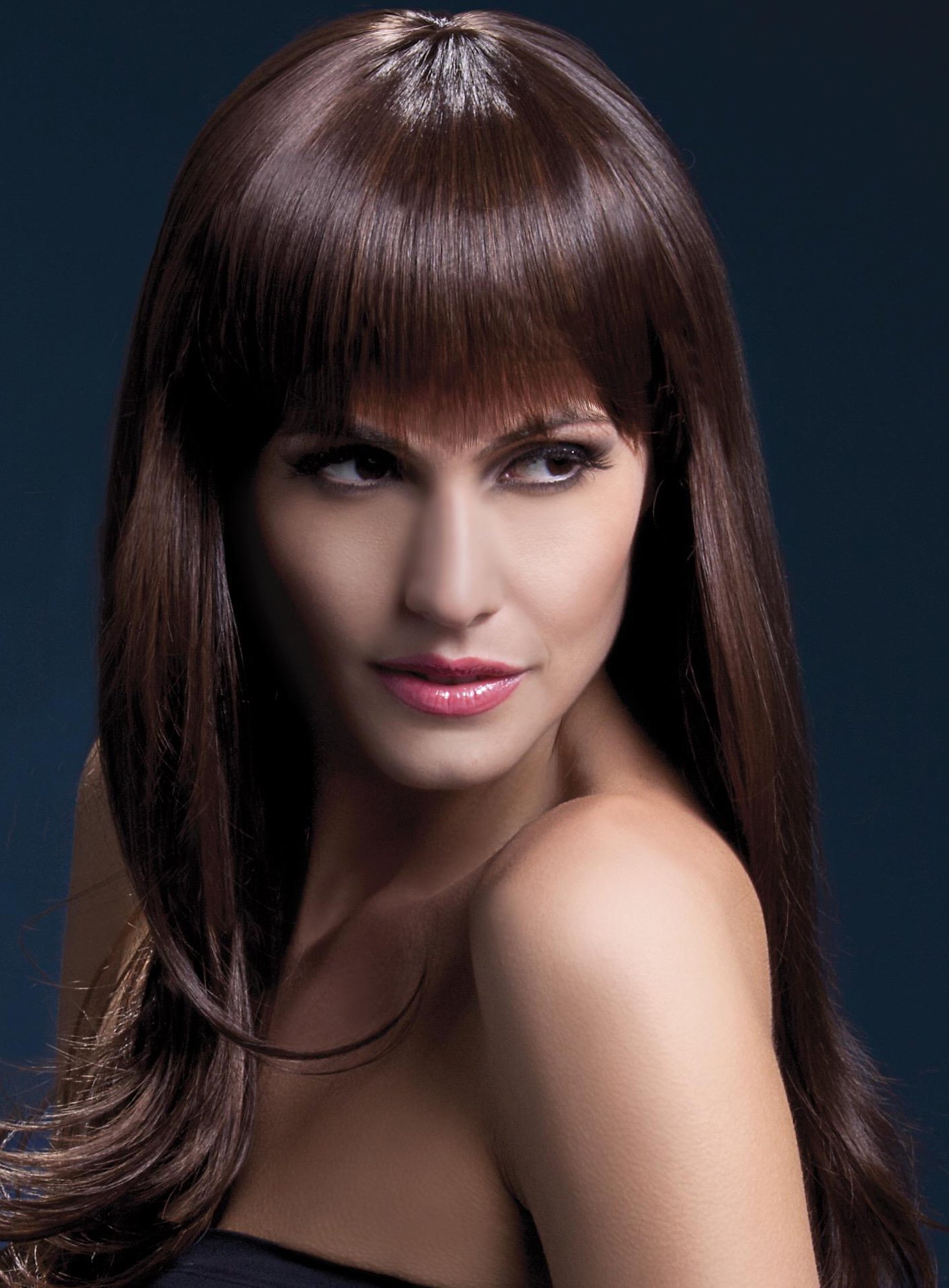 Taglio lungo di piume con frange parrucca marrone