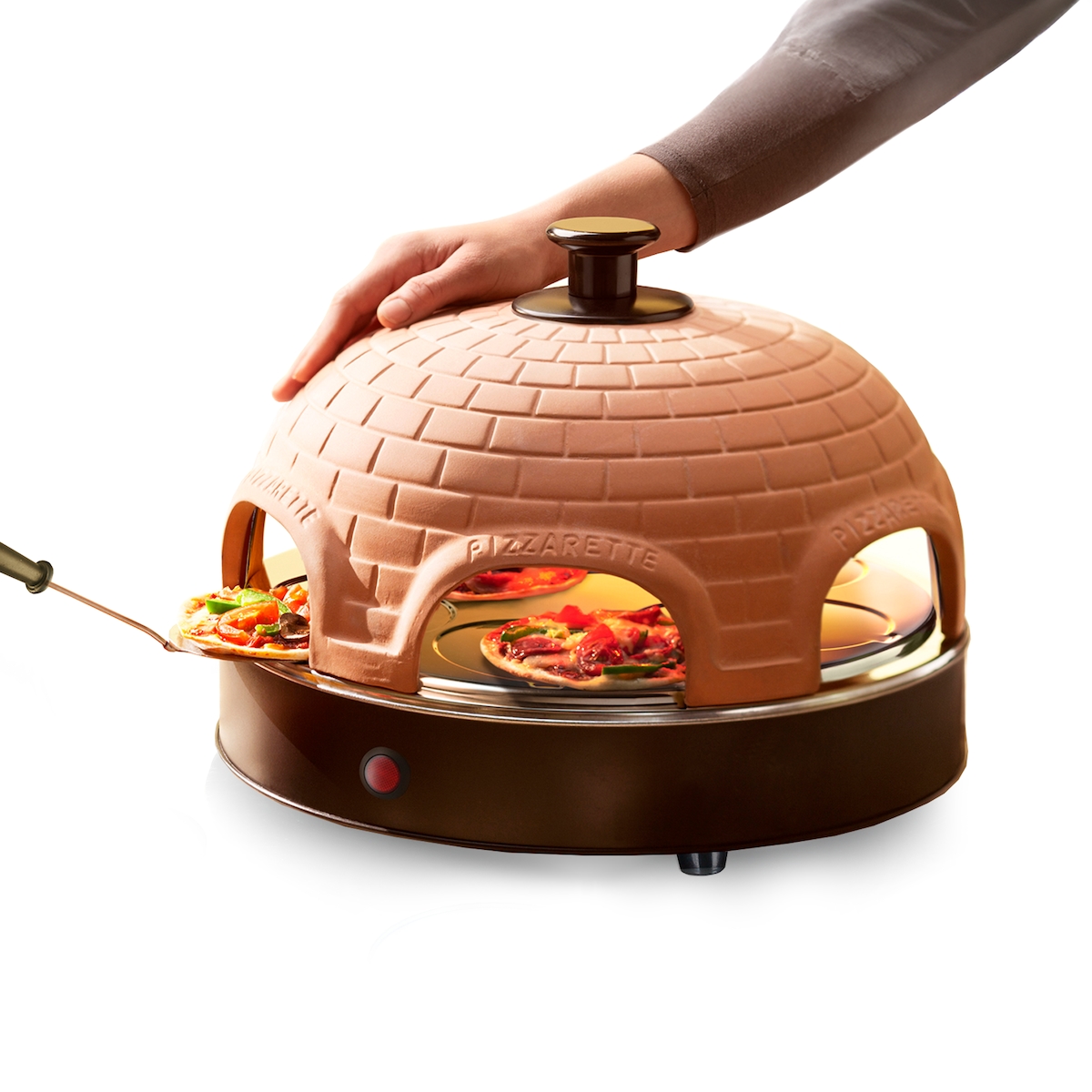 Emerio Pizzarette Original PO-115984 – 1200W – Pizzaofen für 6 Personen – Handgefertigte Terrakotta-Kuppel – Pizza Ofen – 6 Backspachteln - Cool Touch