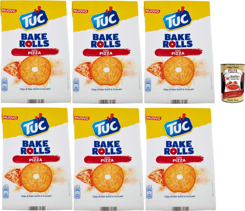 Tuc Bake Rolls, Chips di Pane Sottile e Croccante gusto PIzza, Im Ofen gebackene, dünne und knusprige PIzza Brotchips 6x 150 g + Italian Gourmet p...