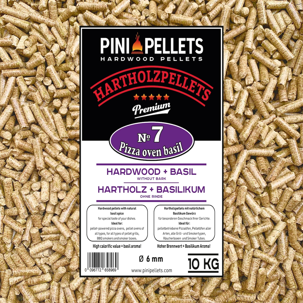 PINI Hartholzpellets Nr. 7 BBQ Pizza Oven Basilikum 10 Kg Grillpellets zum Grillen Räuchern Smoken