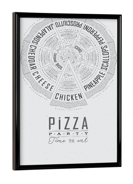 Poster mit schwarzem Rahmen "Illustration Pizza-Party-Farbe" artboxONE - Essen & Trinken