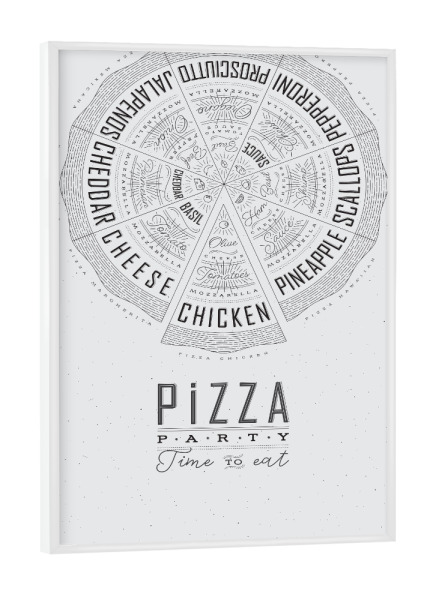 Poster mit weißem Rahmen "Illustration Pizza-Party-Farbe" artboxONE - Essen & Trinken