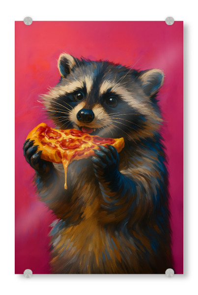 Acrylglasbild "Pizza-Party mit Waschbär" artboxONE - Tiere,Essen & Trinken,Lustig
