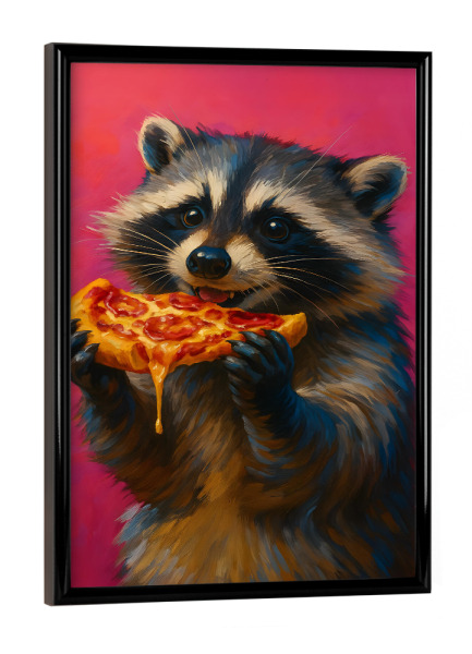 Poster mit schwarzem Rahmen "Pizza-Party mit Waschbär" artboxONE - Tiere,Essen & Trinken,Lustig