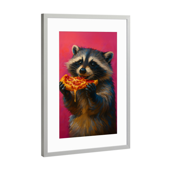 Poster mit Rahmen Silber "Pizza-Party mit Waschbär" artboxONE - Tiere,Essen & Trinken,Lustig