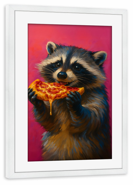 Poster mit Rahmen weiß "Pizza-Party mit Waschbär" artboxONE - Tiere,Essen & Trinken,Lustig