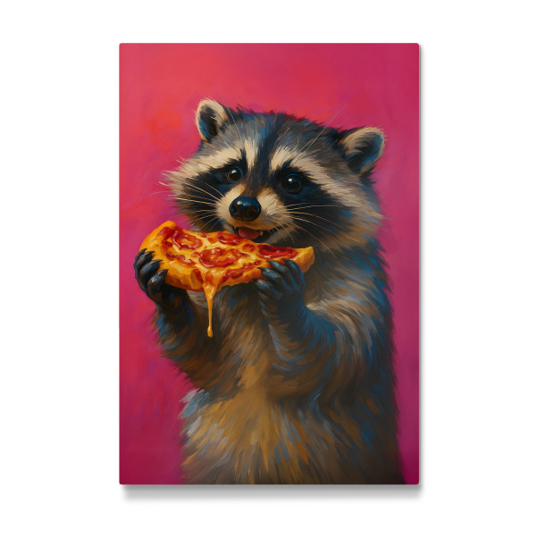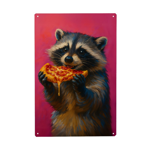 Metall Poster "Pizza-Party mit Waschbär" artboxONE - Tiere,Essen & Trinken,Lustig