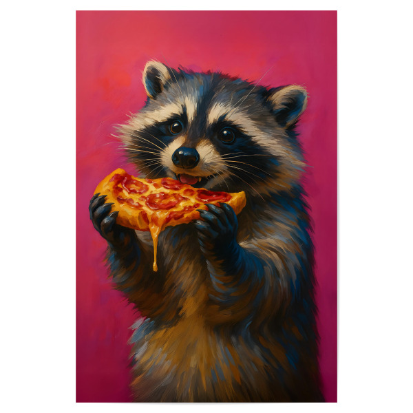 Poster mit weißem Rahmen "Pizza-Party mit Waschbär" artboxONE - Tiere,Essen & Trinken,Lustig