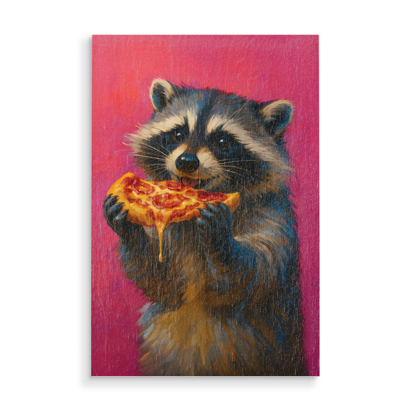 Holzbild "Pizza-Party mit Waschbär" artboxONE - Tiere,Essen & Trinken,Lustig