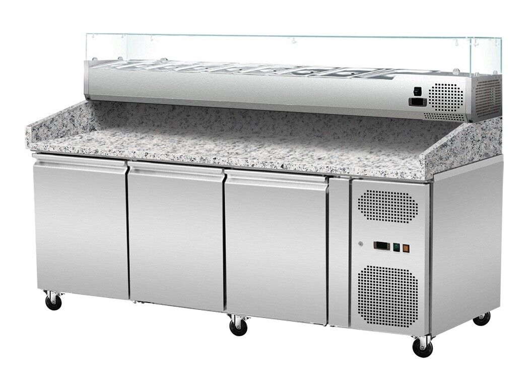 Skyrainbow Pizzakühltisch | 3 Volltüren mit Granit-Arbeitsplatte