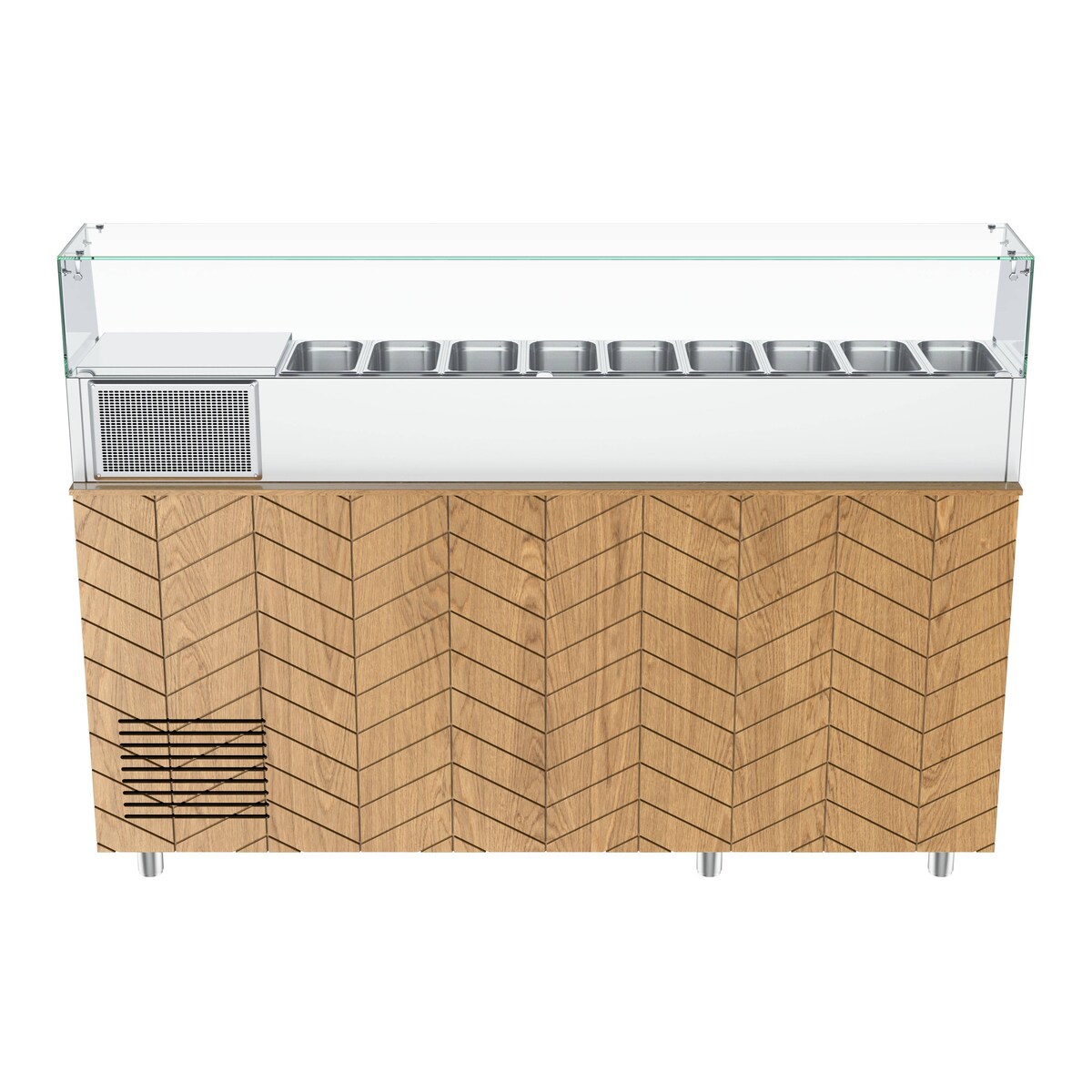 Pizzakühltisch, 3 Türen, 580 L, Gitter 600 x 400 mm, mit Kühlaufsatzvitrine für 9 Behälter GN1/3
