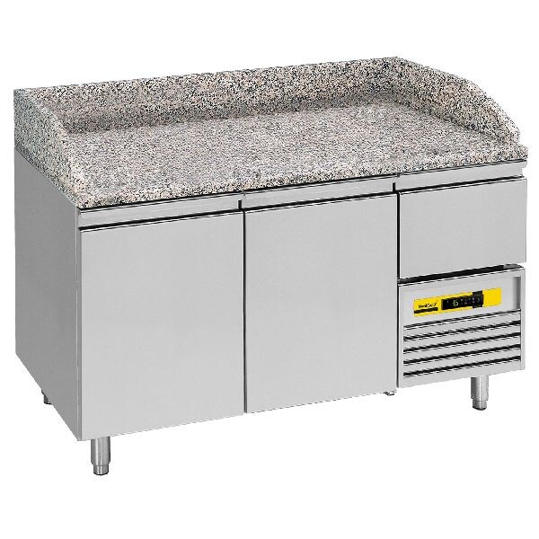 Pizzakühltisch / Saladette, statisch, 2 Türen, Temperatur +2°C/+8°C, Arbeitsplatte aus Granit
