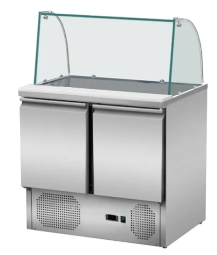 Gastro Saladette - Pizzakühltisch - 90 cm - 2 Türen - Passt 5 x 1/6 GN - inkl. Glasabdeckung