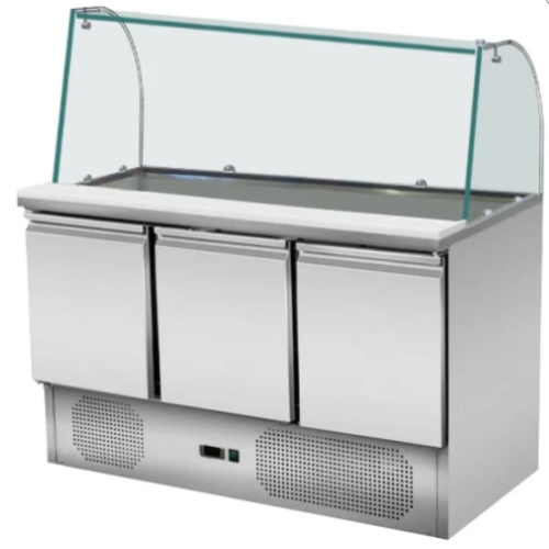 Gastro Saladette - Pizzakühltisch - 137 cm - 3 Türen - Passt 8 x 1/6 GN - inkl. Glasabdeckung