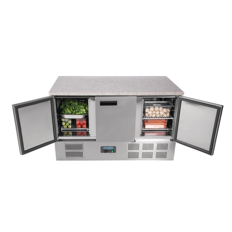 Polar Serie G Thekenkühltisch mit Marmorarbeitsfläche 3-türig 368Ltr | Pizzakühltisch, GastroHero