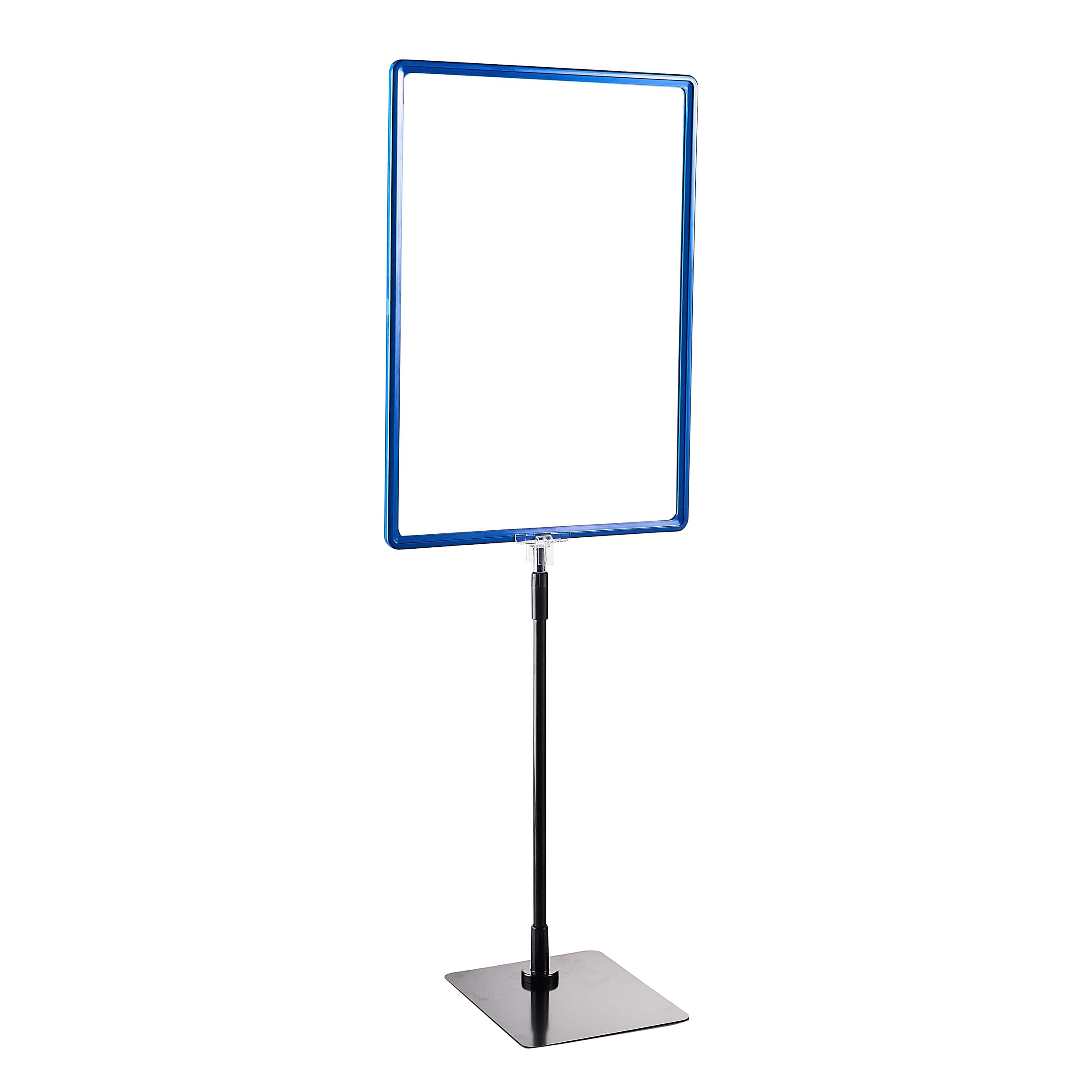 Plakatrahmen mit Standfuß und Halterung (Set) A4 blau | Standfläche: schwarz | Aluminiumstange verstellbar von 600 - 900 mm, Kunststoff