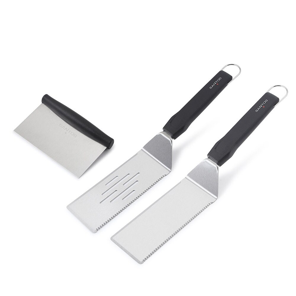 CHEFGASTRO BBQ Grillspachtel Plancha-Set, 3-teilig | 2 Grillspachtel & 1 Grillschaber | Edelstahl, Kunststoff