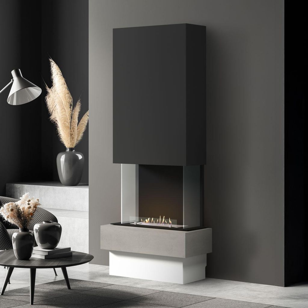 muenkel design Arco [moderner Design Ethanolkamin]: Concrete (Betonoptik) - Planika Senso - schwarz-grau