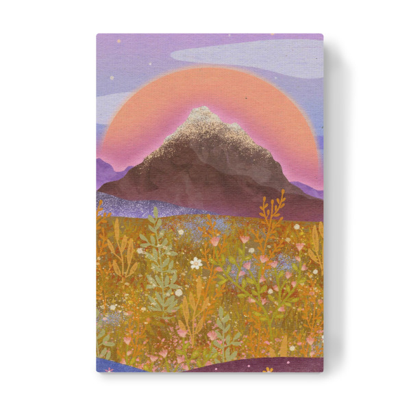 Leinwandbild "Blumenalp" artboxONE - Natur,Floral - Mond,Blumen,Sterne,Berg,Wiese,Nacht,Sommer,Plants,Pflanzen,Mountain,Colorful,Bunt,Moon