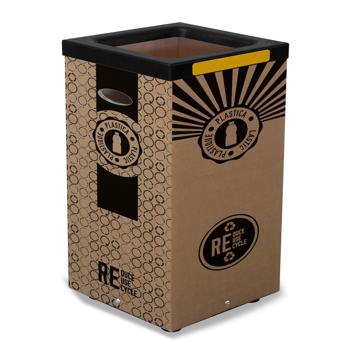 Stil Casa Kartonabfalleimer, 28 x 28 x h. 70 cm, Grafische Bedruckung Plastik, Kunststoffdeckel, Kit mit bunten Aufklebern, Metallboden, 60 Liter.