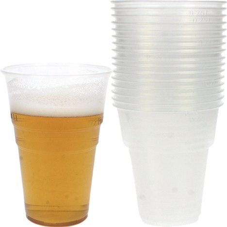 DayBays 100 Stk. Trinkbecher 400ml Ø9cm Plastikbecher mit Eichstrich bei 0,4L transparent PP