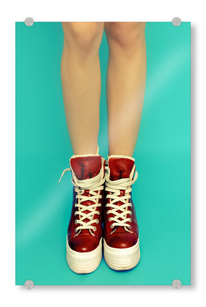 Acrylglasbild "Red Shoes" artboxONE - Fashion - 90s,Neunziger,Neunzigerjahre,90er,Plateau,Schuhe,Schuhe,Sneakers,Nackt,Beine,Beine