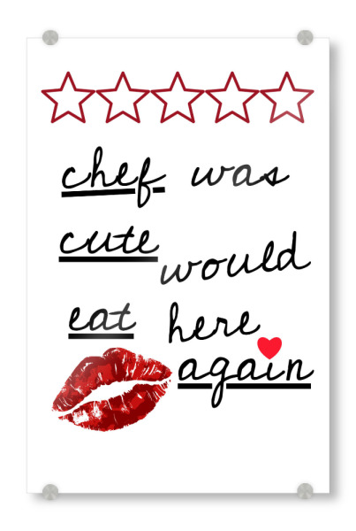 Acrylglasbild "Playful review" artboxONE - Essen & Trinken - Restaurant review,Chef,Dining,Stars,Lips,Cute,Eat,Playful,Heart,Typography,Kitchen,Mom