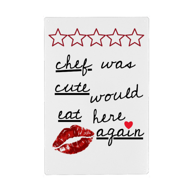 Metall Poster "Playful review" artboxONE - Essen & Trinken - Restaurant review,Chef,Dining,Stars,Lips,Cute,Eat,Playful,Heart,Typography,Kitchen,Mom