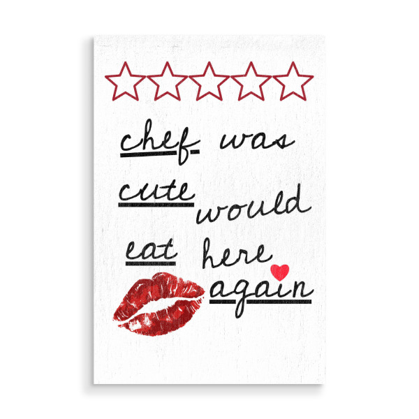Holzbild "Playful review" artboxONE - Essen & Trinken - Restaurant review,Chef,Dining,Stars,Lips,Cute,Eat,Playful,Heart,Typography,Kitchen,Mom