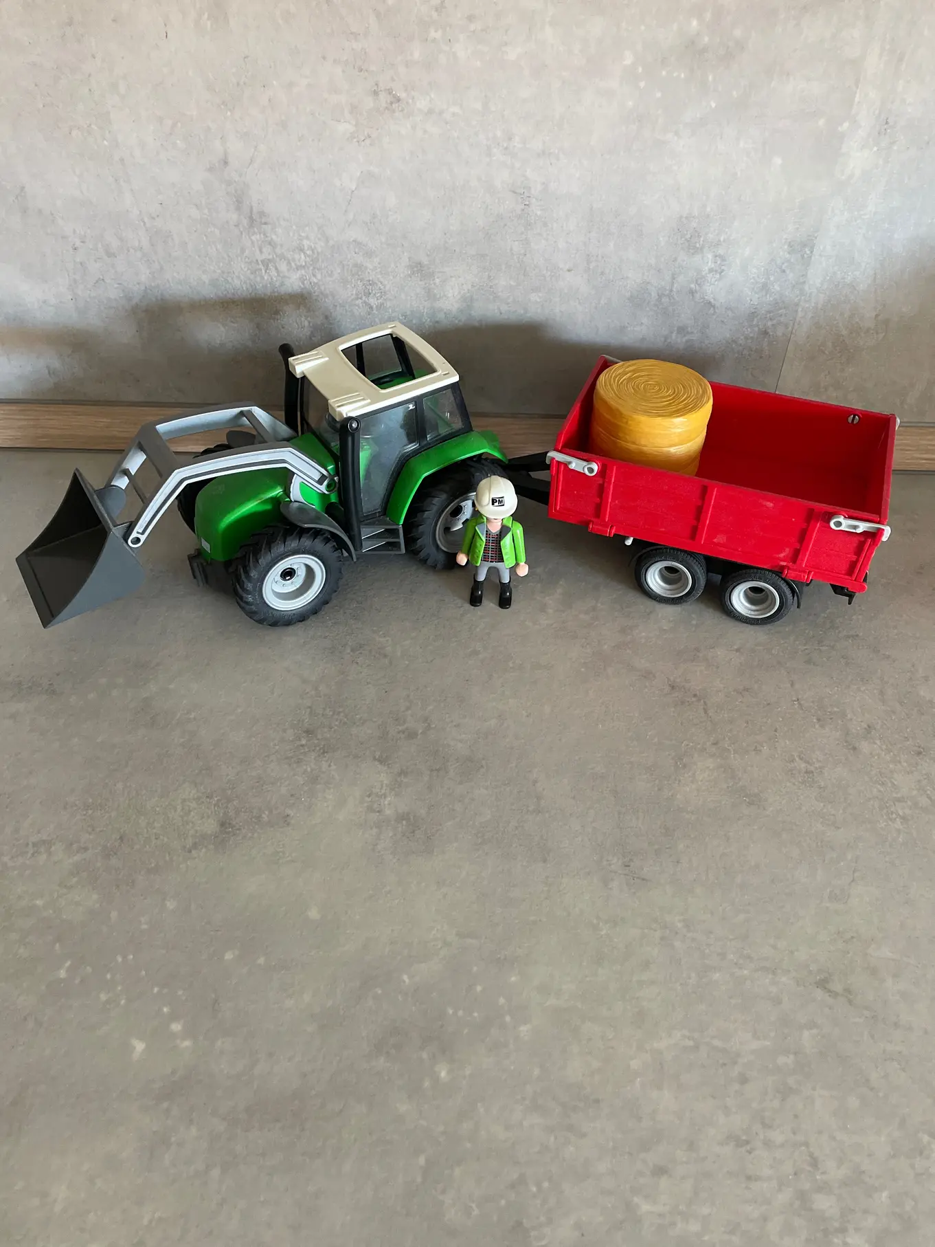 PLAYMOBIL Traktor mit Anhänger und Ballen Spielzeugauto Bauernhof