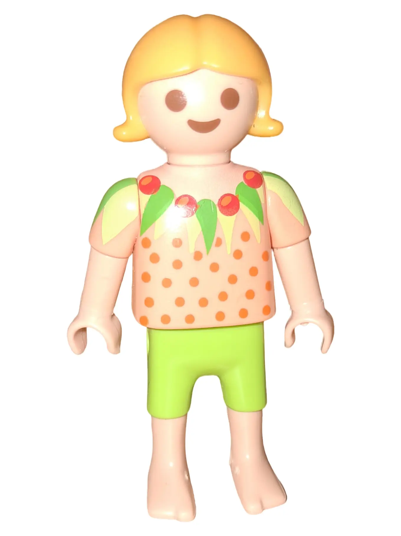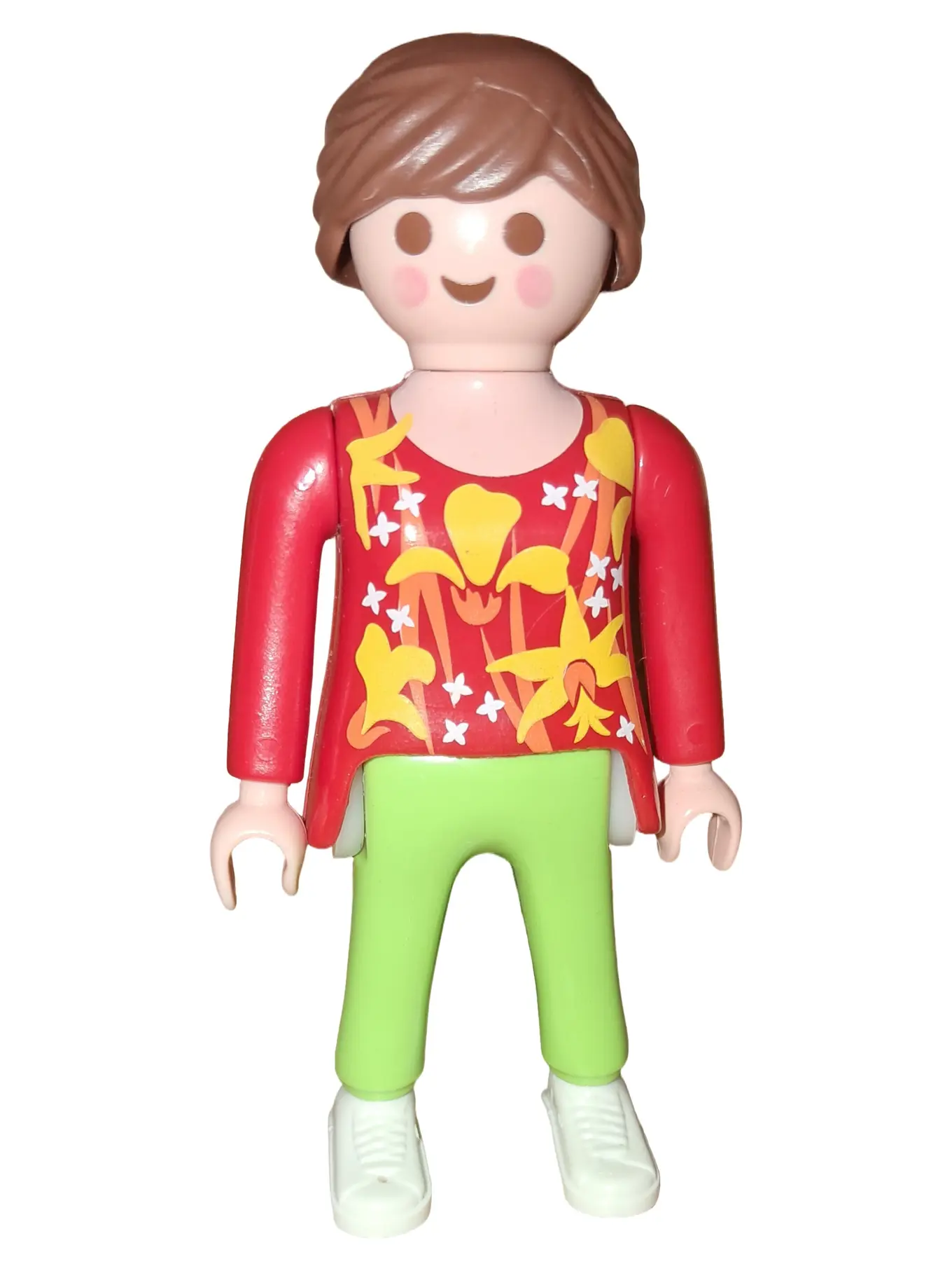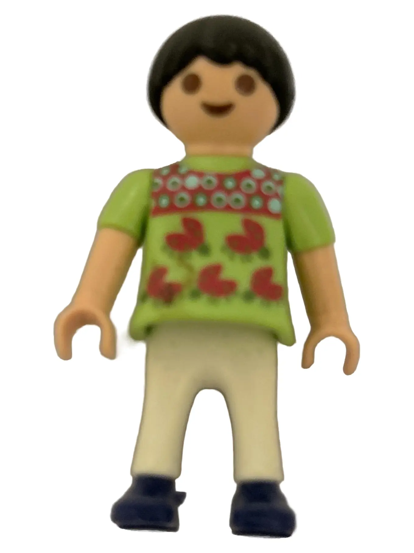 PLAYMOBIL Mädchen Figur Zopf grünes Shirt Blumen Hose beige 5cm