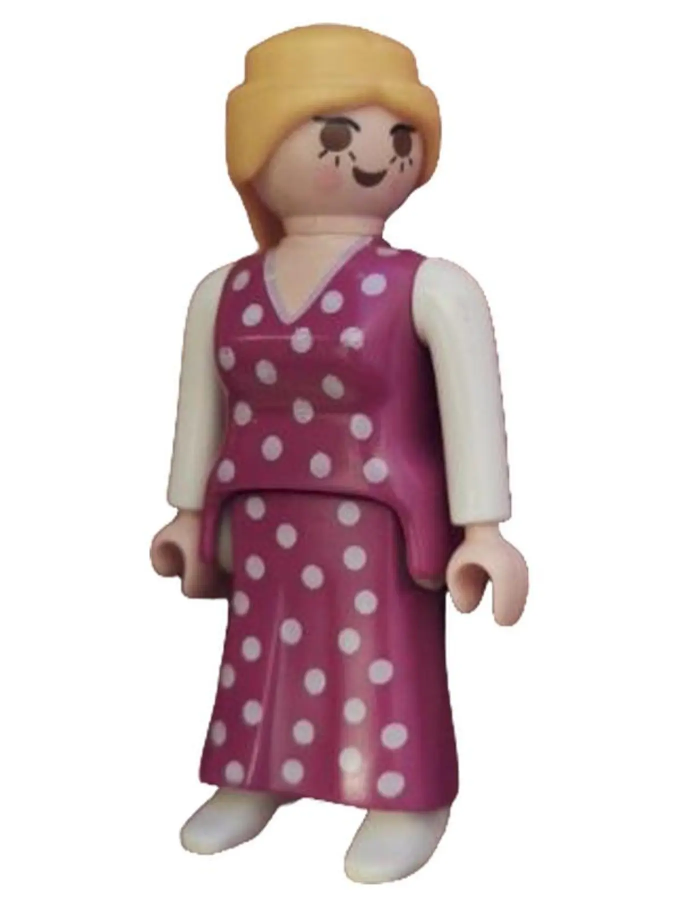 PLAYMOBIL Dame im rosa gepunkteten Kleid Spielfigur Mädchen blonde Haare