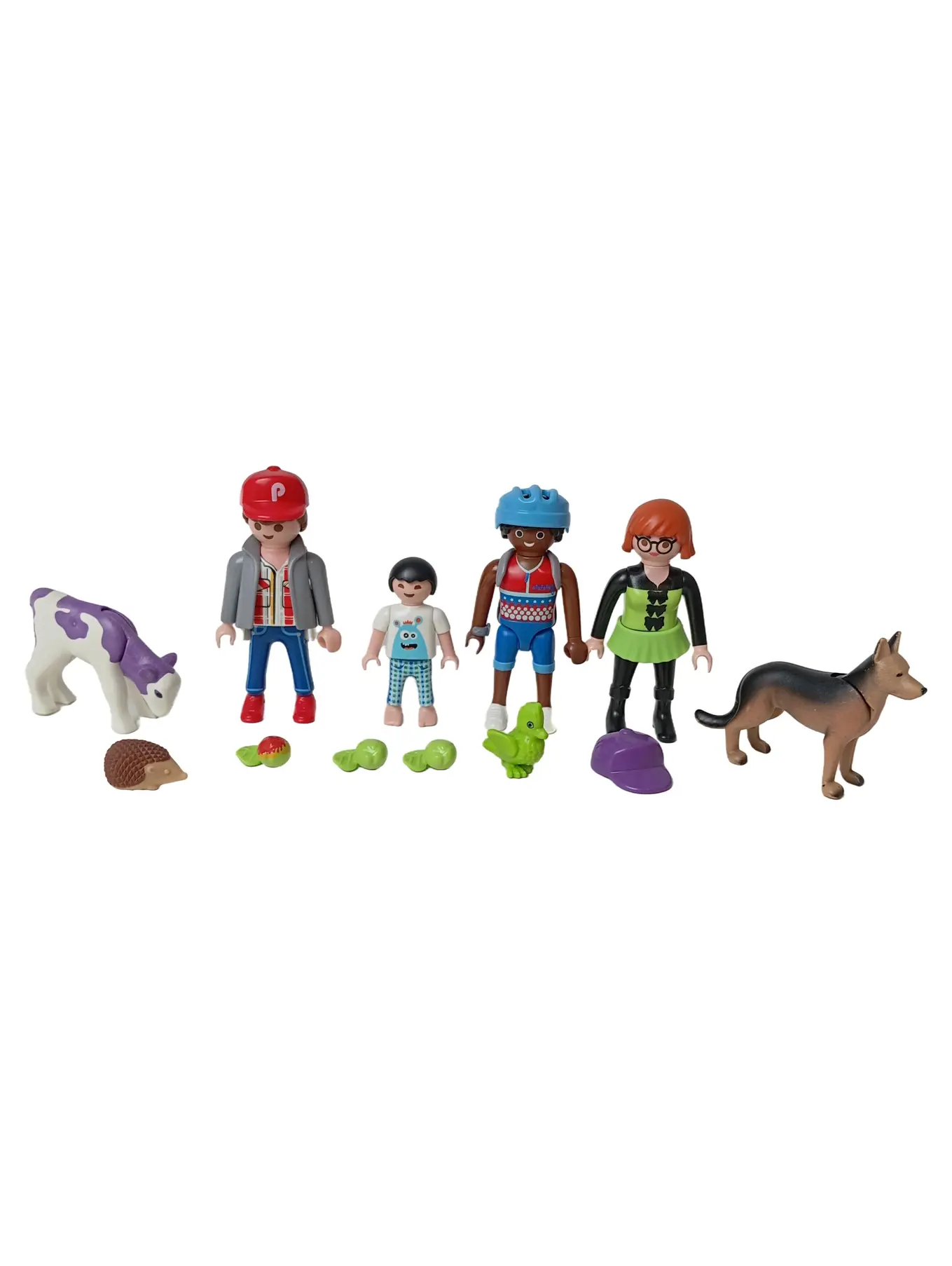 PLAYMOBIL Spielfiguren-Set Familie Kind Mädchen Hund Kuh Igel Mehrfarbig