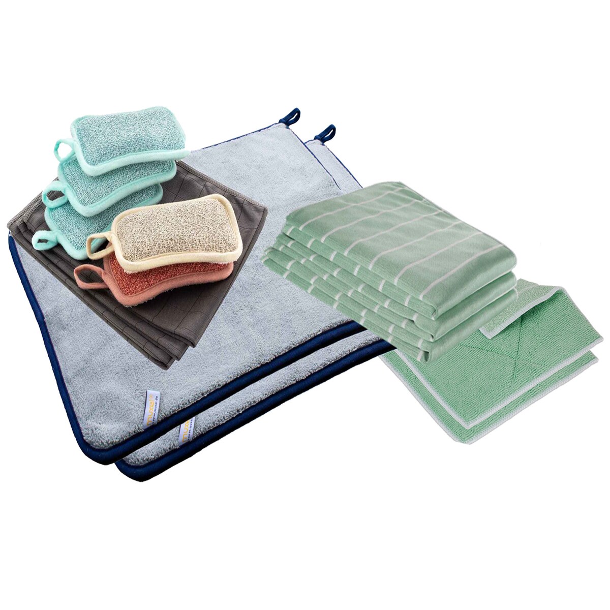 Muxel Das große Autoreinigungsset 3 Carbon-Tücher ideal für Lack und Felgenpflege 5 Schwämme 2 Poliertücher 1200 GSM 3 Bambustücher für die