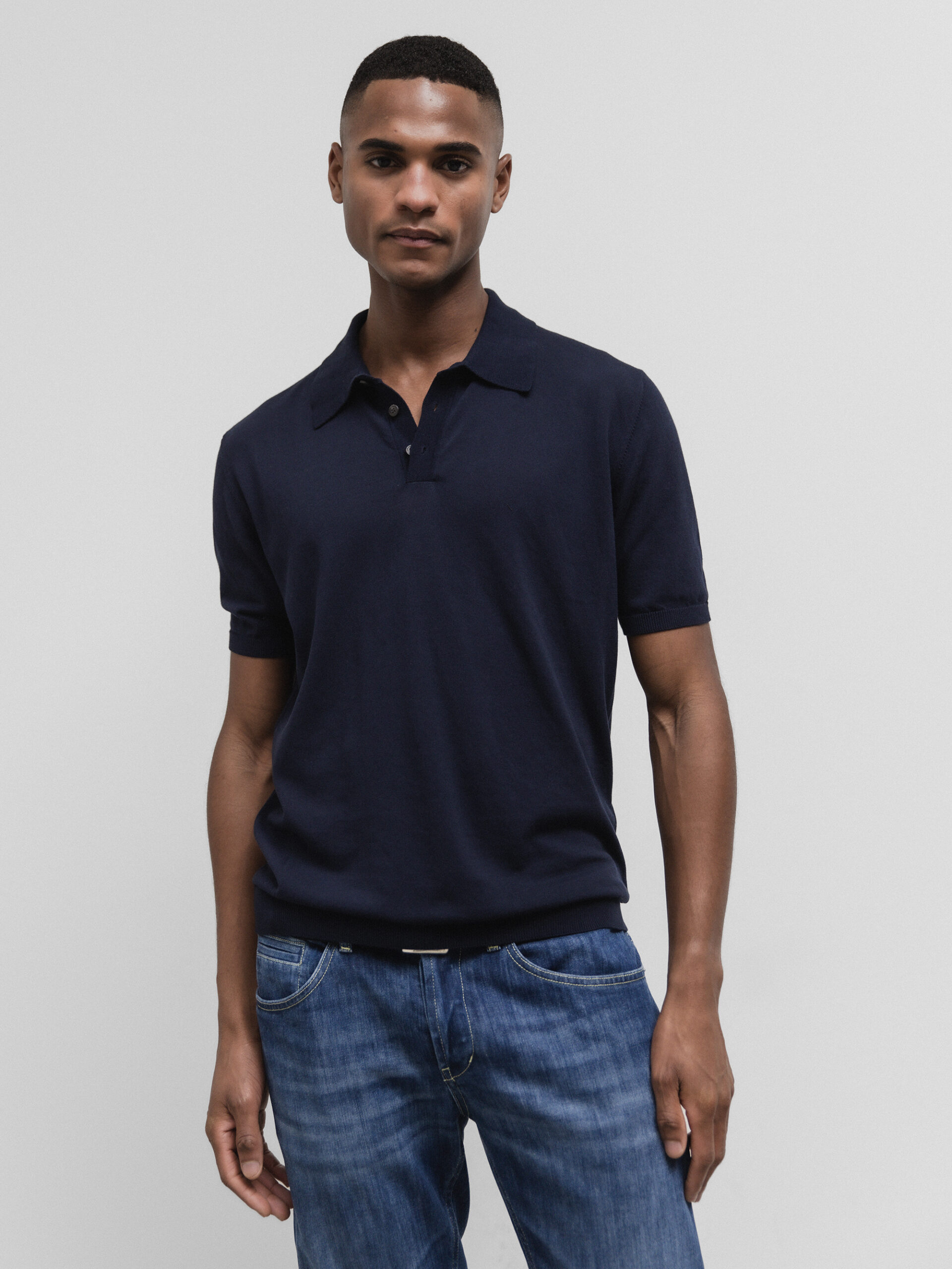 Herren Casa Moda Polo Gestrickt, Blau, M, Herren-Poloshirts-Kurzarm-Poloshirts