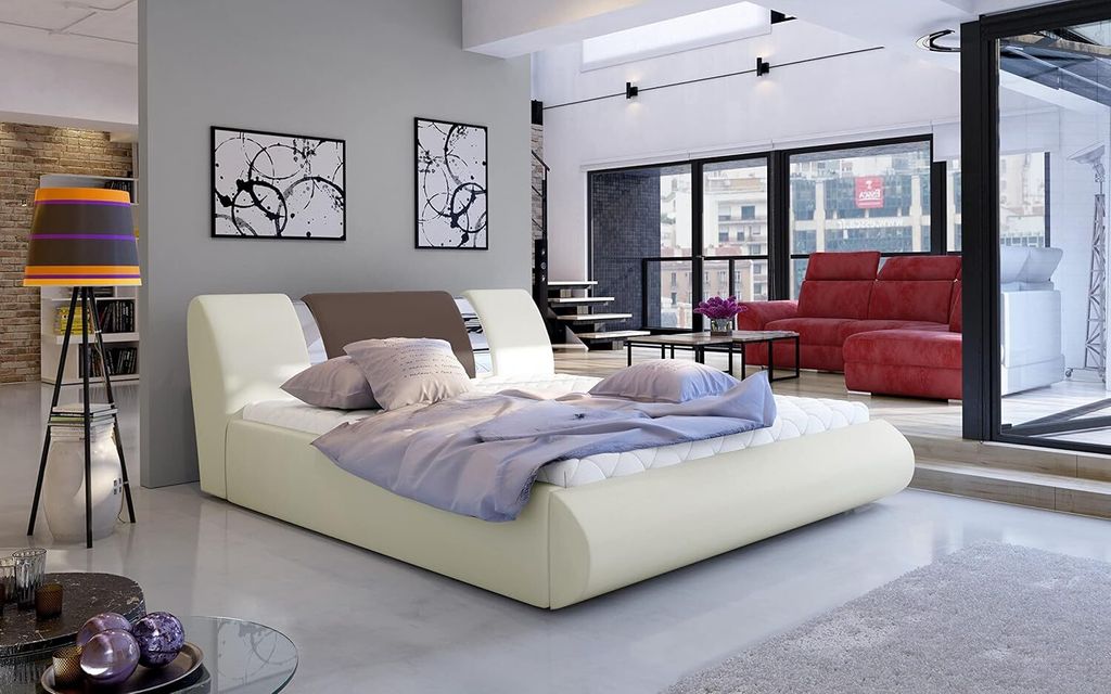 MKS MEBLE Doppelbett Polsterbett mit Lattenrost 180x200 EMORA CLASSIC DUO Bett mit Kopfteil Foam Matratze MIRO LUX Beige Strukture