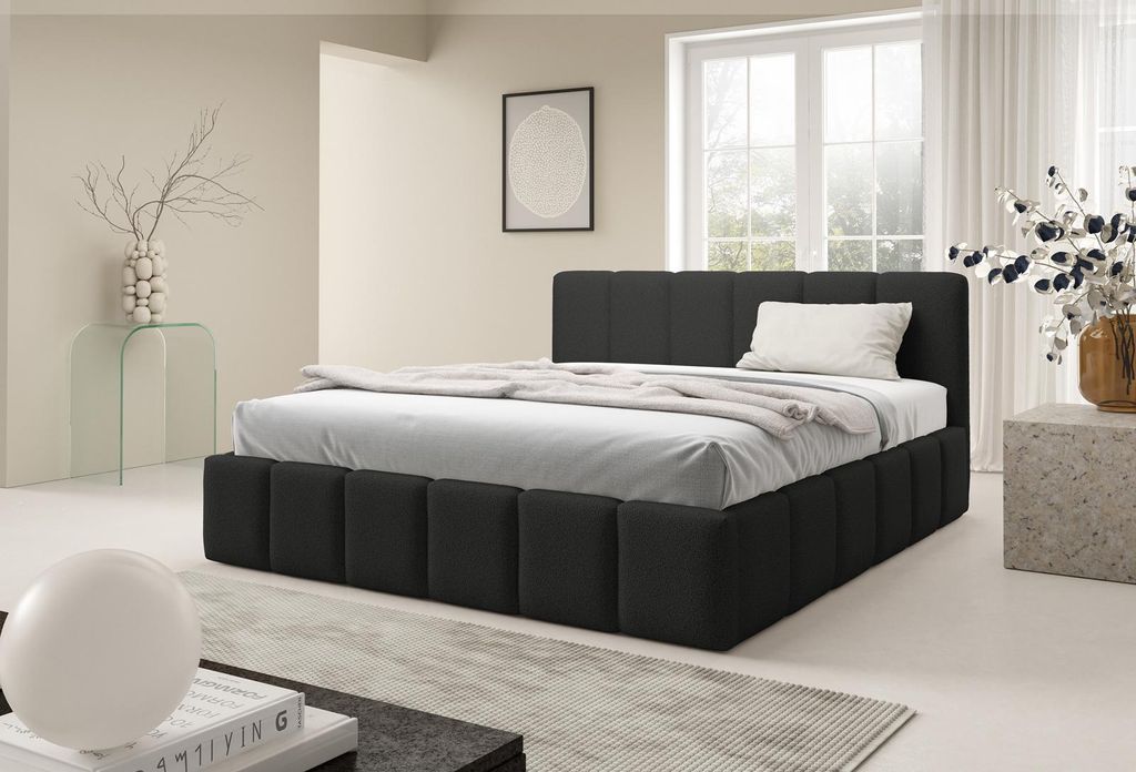 ALTDECOR Polsterbett mit Matratze H3/H4 und Bettkasten NOMA v1 - 180x200 Schwarz - Bett mit Lattenrost, Kopfteil, Boxbett, Doppelbett mit Stauraum