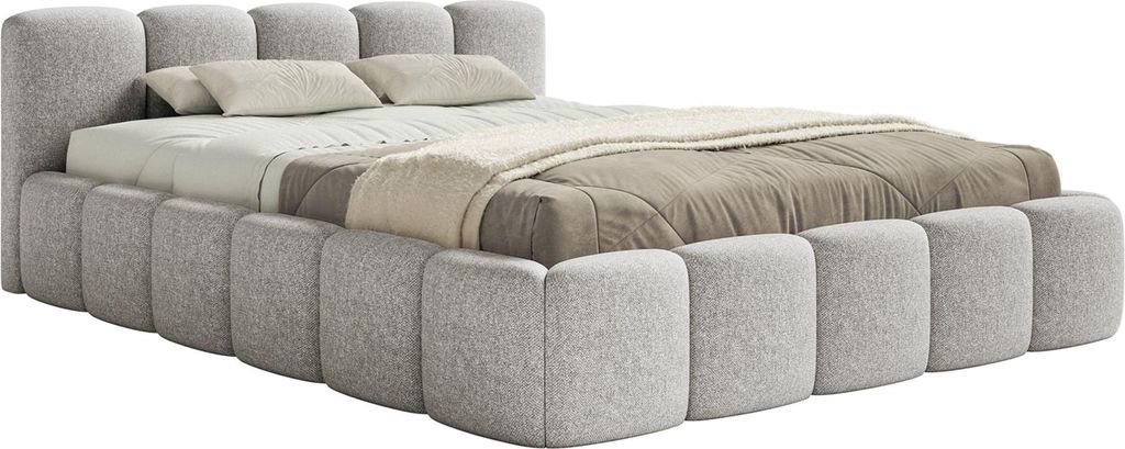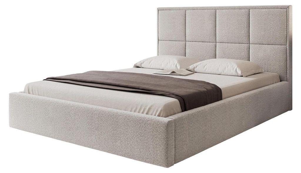 MKS MEBLE Doppelbett Polsterbett EMORA CLASSIC Bett Holzgestell hohes Kopfteil 180x200 Beige Strukture