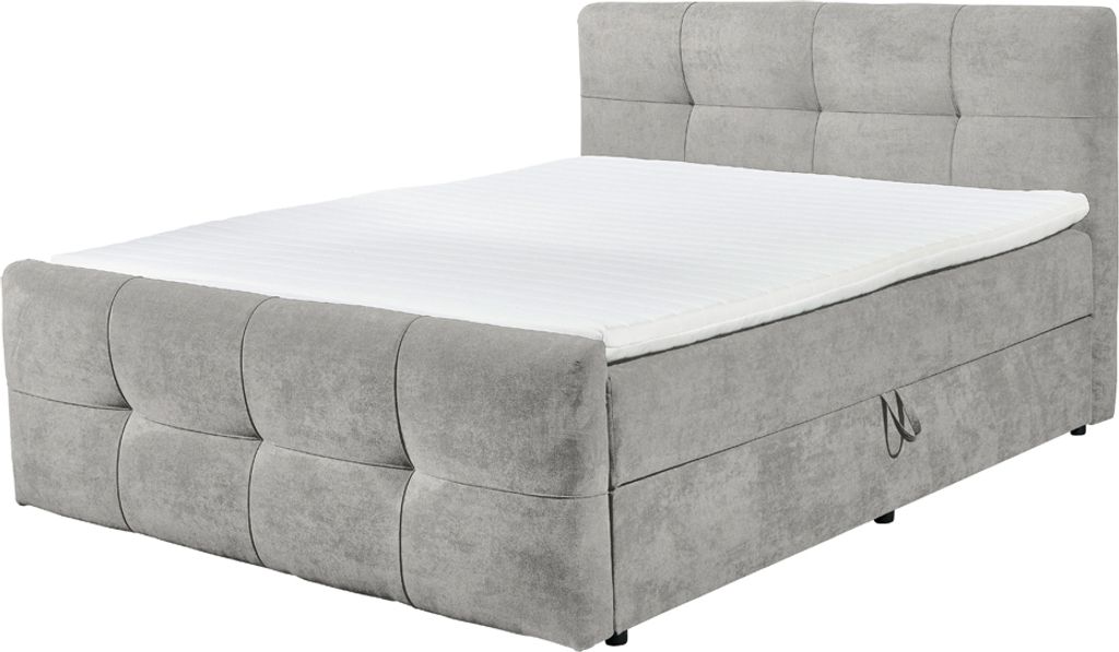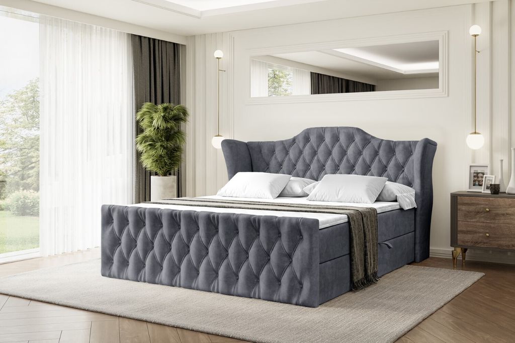 Masseno Boxspringbett LONIS 180x200 cm Komplett-Set mit Bonell Matratze und Topper, Polsterbett mit Bettkästen -Grau, SAWANA 05