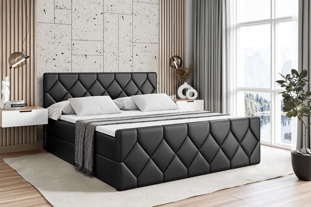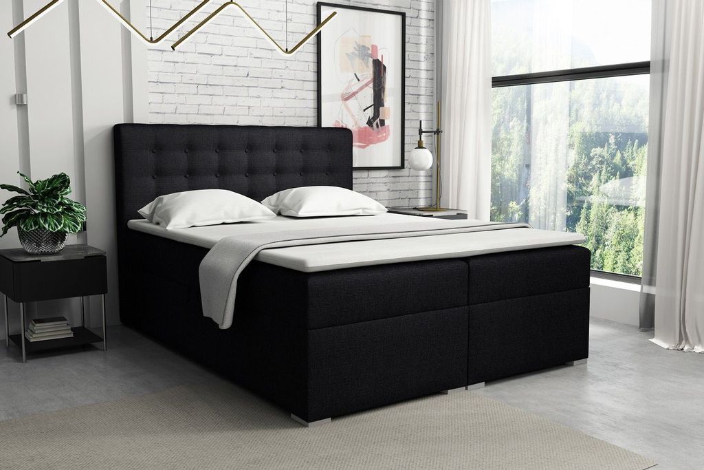 Bett Boxspringbett LUNA ohne Topper mit Bettkästen - Doppelbett, Stauraum, Schlafzimmer, Polsterbett, Bettgestell (180x200, Schwarz - ITAKA 15)